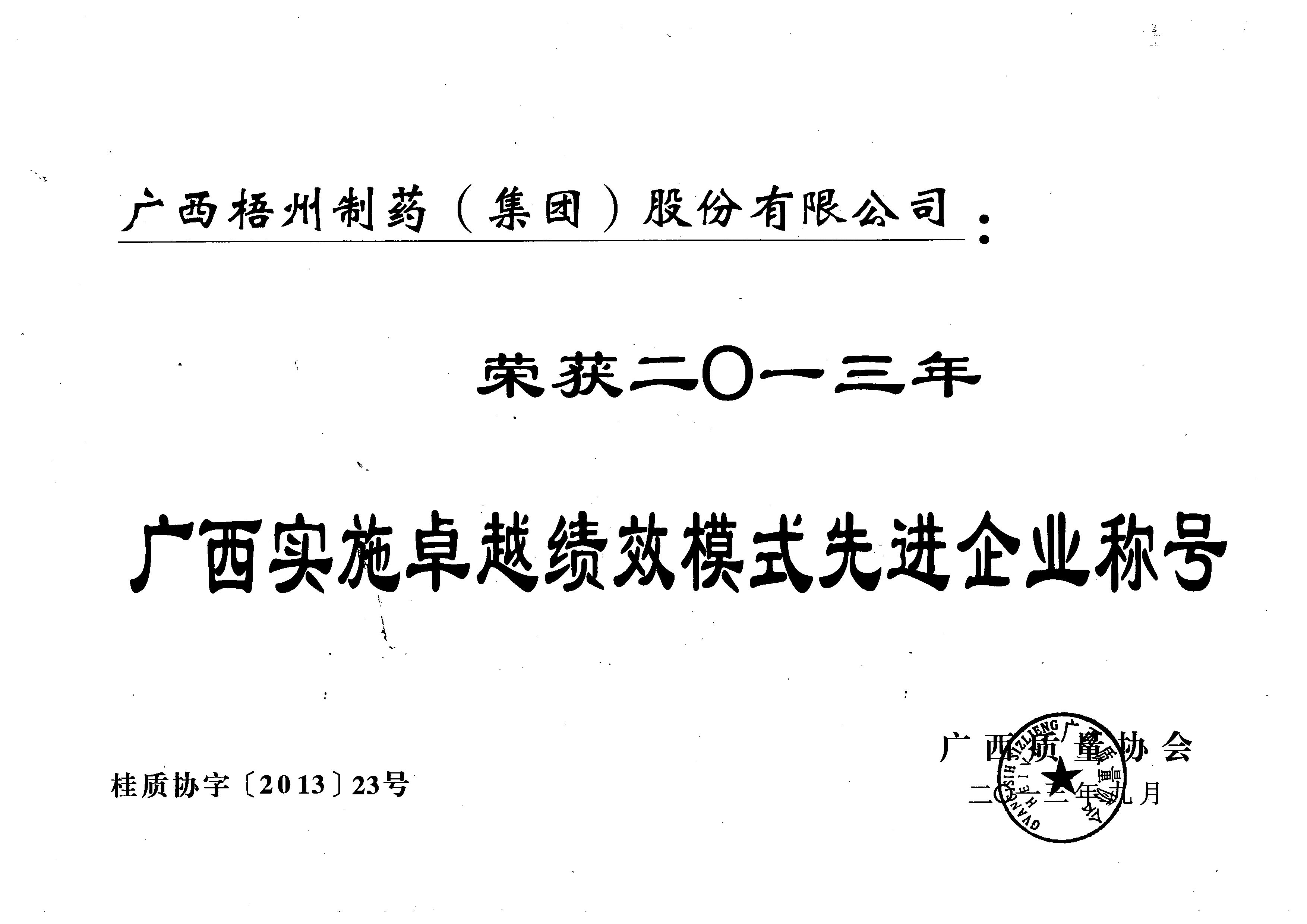 榮獲2013年廣西實(shí)施卓越績效模式先進(jìn)企業(yè)稱號