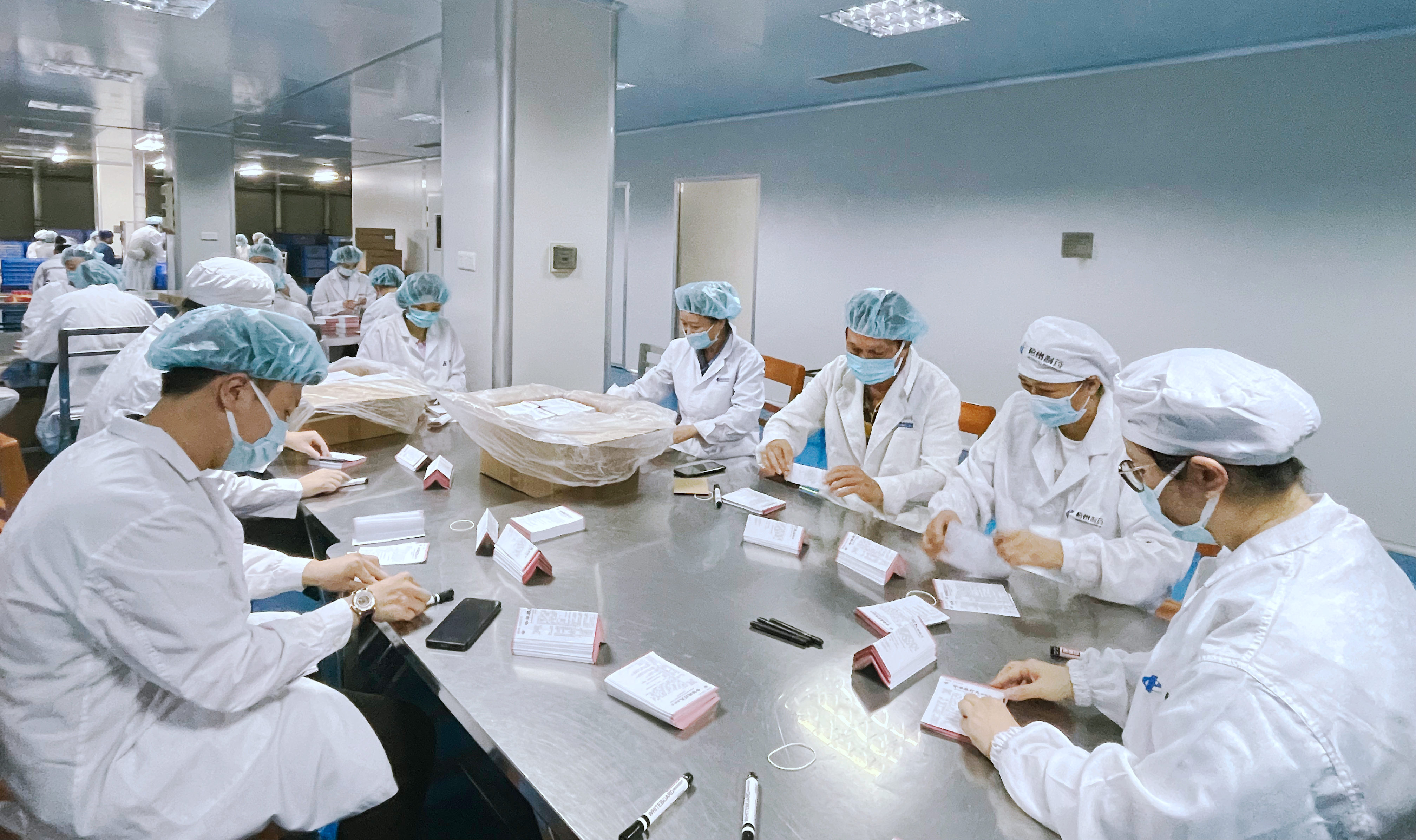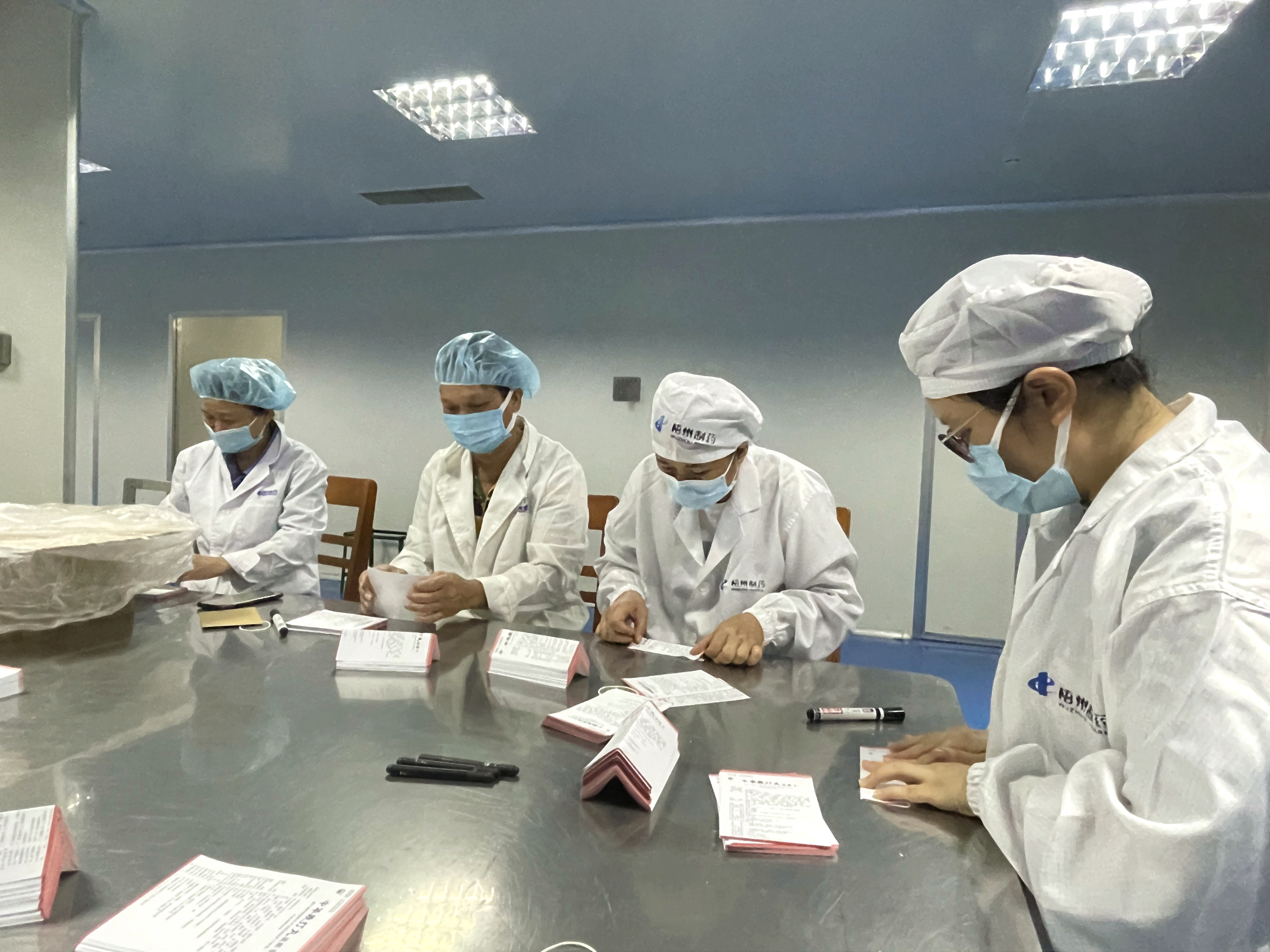 每天下午4點(diǎn)過后,志愿者們都會(huì)來到固體車間,穿上白大褂、戴上帽子、鞋套、手套,變身一線生產(chǎn)工人,在專業(yè)師傅的指導(dǎo)下,由一開始的手忙腳亂,到后來的得心應(yīng)手,井然有序地開展中華跌打丸入托、入籃、折說明書等工序工作,現(xiàn)場呈現(xiàn)出一片熱火朝天、你追我趕的勞動(dòng)場面,志愿者的到來使中華跌打丸的日產(chǎn)量得到了提升。