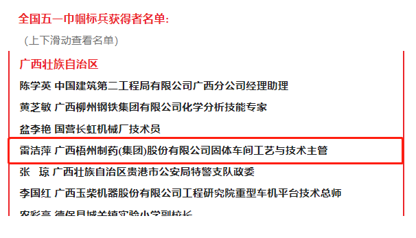 近日,中華全國總工會在北京隆重召開2023年全國五一巾幗獎表彰大會,大會表彰了450個全國五一巾幗標兵崗、450名全國五一巾幗標兵。梧州制藥固體車間工藝與技術主管、中華跌打丸制作技藝“非遺”傳承人雷潔萍榮獲“全國五一巾幗標兵”稱號。其所在的固體車間于2021年度曾榮獲 “全國巾幗文明崗”榮譽稱號,她們巾幗不讓須眉,立足崗位履職盡責,把智慧和汗水奉獻在崗位,為企業(yè)快速發(fā)展作出了積極貢獻,充分發(fā)揮了“半邊天”不可替代的作用。