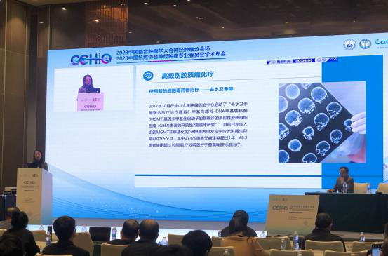 會(huì)上,中山大學(xué)腫瘤防治中心郭琤琤教授為注射用去水衛(wèi)矛醇納入《膠質(zhì)瘤化療中國(guó)專家共識(shí)》進(jìn)行詳細(xì)的解讀。她表示,去水衛(wèi)矛醇主要作用機(jī)制是由-鳥嘌呤DNA烷化,具有不受MGMT影響,對(duì)膠質(zhì)瘤細(xì)胞增殖有較高抑制率,血腦屏障(BBB)通過(guò)率較高等優(yōu)點(diǎn)?!叭ニl(wèi)矛醇聯(lián)合放療治療具有-甲基鳥嘌呤-DNA甲基轉(zhuǎn)移酶 (MGMT)基因未甲基化啟動(dòng)子的新確診的多形性膠質(zhì)母細(xì)胞瘤 (GBM)患者的開放性2期臨床研究”項(xiàng)目顯示:MGMT非甲基化的GBM患者中發(fā)現(xiàn)中位無(wú)進(jìn)展生存期可達(dá)9.5個(gè)月,其中27.6%患者無(wú)病生存超過(guò)1年,48.3%患者使用超過(guò)10周期。為醫(yī)師在臨床應(yīng)用中提供更多的依據(jù),有機(jī)會(huì)提高M(jìn)GMT非甲基化的膠質(zhì)瘤患者療效,增加患者生存獲益。