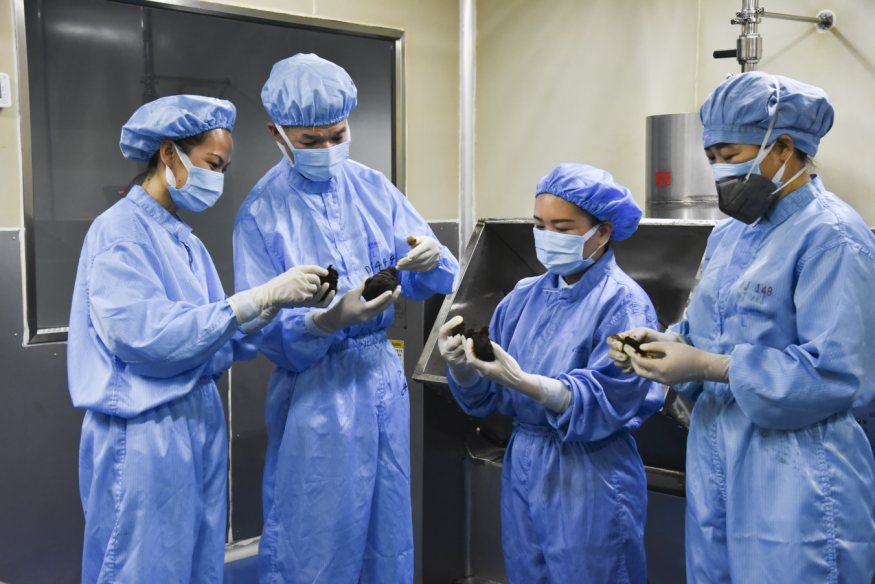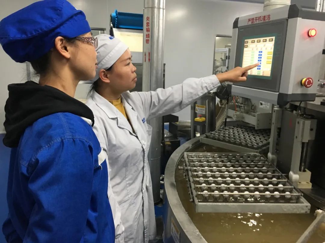 面對這個問題,雷潔萍和團(tuán)隊加快技術(shù)改造創(chuàng)新,引進(jìn)兩條大蜜丸全自動扣殼、全自動蘸蠟設(shè)備聯(lián)動生產(chǎn)線。反復(fù)調(diào)試入殼機扣殼的吻合度與力度,最終實現(xiàn)機械設(shè)備間的聯(lián)動生產(chǎn),操作人員由100余人壓降到20余人,日產(chǎn)量翻了10倍,大幅提高產(chǎn)能及生產(chǎn)效率,縮短了生產(chǎn)周期。