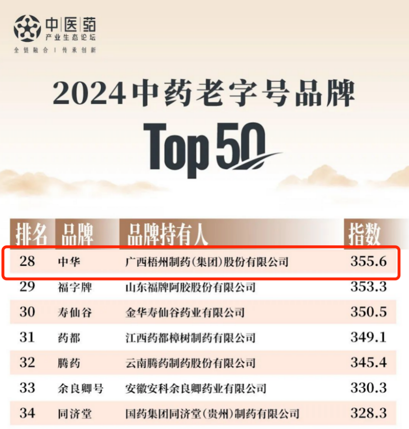 成立以“全國(guó)五一勞動(dòng)獎(jiǎng)?wù)隆薄叭珖?guó)五一巾幗標(biāo)兵”“廣西工匠”獲得者雷潔萍命名的勞模工匠人才創(chuàng)新工作室,不斷壯大傳承人隊(duì)伍,目前中華跌打丸制作技藝已傳承至第五代,推動(dòng)“中華”品牌代代相傳?!爸腥A”品牌曾入選2023年“中國(guó)500最具價(jià)值品牌”,估值100.06億。