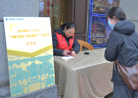 活動現(xiàn)場,女職工們三五成群,穿梭于騎樓城的大街小巷,感受百年騎樓的獨特魅力,探尋隱匿在歷史深處的非遺文化。在“非遺尋韻‘跌打丸’”任務點,大家紛紛駐足,掃碼觀看《“丸”世傳奇》短劇,深入了解中華跌打丸這一非遺瑰寶的歷史與傳承。蓋在主題卡上的“中華”印章,為這場探索之旅增添了濃厚的歷史韻味。
