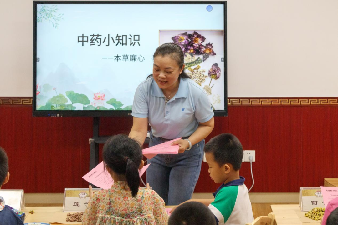 活動以朗誦葉劍英家書開篇,家長與孩子深情共讀,勾勒出一幅風(fēng)清氣正的和美畫卷。在“中藥小知識——本草廉心”小課堂里,工作人員展示淡竹葉、蓮子、荷葉等清心類藥材標(biāo)本,孩子們在家長陪伴下觀察形態(tài)、嗅聞氣味、參與趣味問答,感受中醫(yī)藥文化的獨特魅力,讓古老中醫(yī)藥文化在孩子們心中“鮮活”起來。