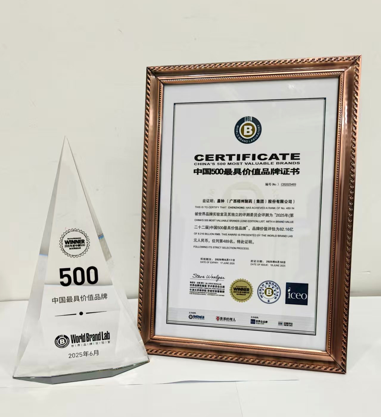 廣西梧州制藥(集團)股份有限公司“晨鐘品牌”獲評中國500最具價值品牌,品牌價值評估為82.16億人民幣。